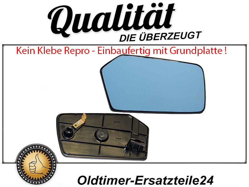 This mirror glass is not, as is often offered, a smooth mirror glass which first has to be glued to the old defective glass or the base plate and is then perhaps twice as thick as the original, but rather a completely ready-to-install mirror glass including the base plate , exactly as it was delivered by Mercedes back then.
