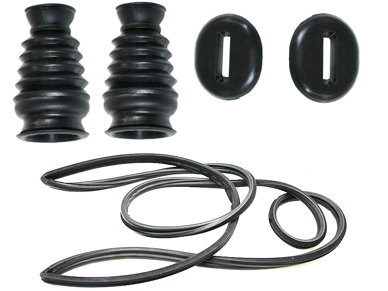 This seal set consists of the tailgate seal, 2x bellows for the hood dampers, as well as the two rubber pads on the hood hinge